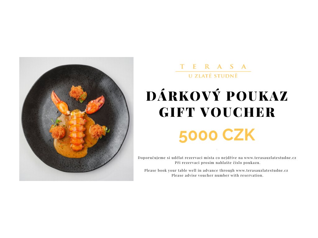 Poukaz na konzumaci v hodnotě 5000 CZK v restauraci Terasa U Zlaté Studně.Platnost poukazu je 1 rok od data zakoupení. Při rezervaci nahlaste číslo poukazu.